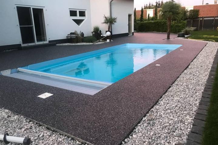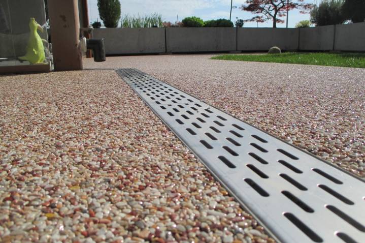 Felülete lehet sima és nedvesség áteresztő.A kőszőnyeg egyenlő nagyságú, 5-10 mm vastagságú, akár azonos színű, osztályozott kavicsokból áll. Ezeket két komponensű gyantával keverjük össze és egy speciális technológiával hordjuk fel a felületre. Igény szerint ezután történik a felület feltöltése, de az így kapott felület már akár végfelületnek is teljesen megfelelő, amennyiben Önnek így tetszik.